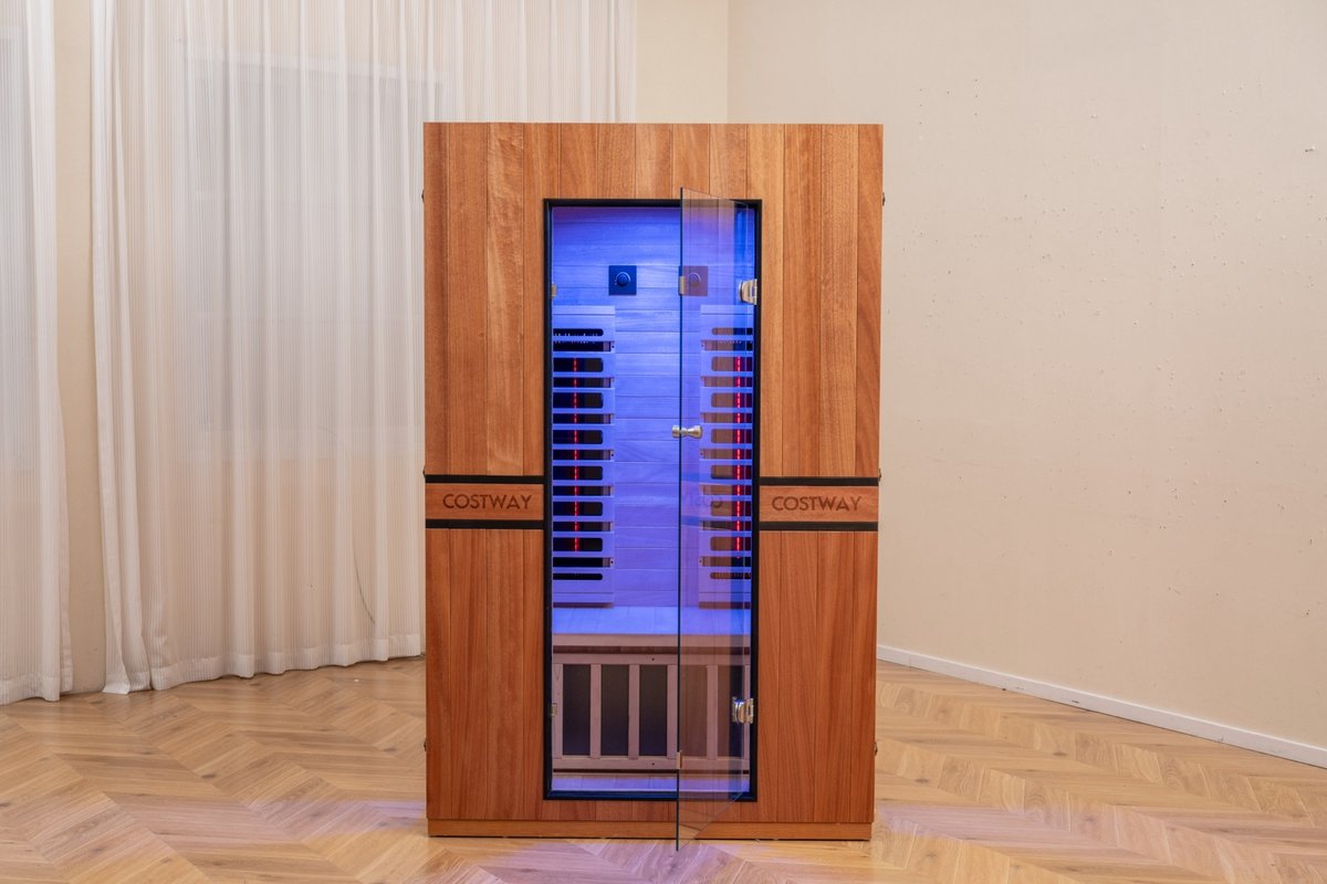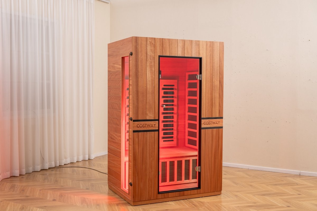 Bring the spa home — and bring control to your wellness routine. This Costway 2-Person Full Spectrum Sauna combines far infrared heat, targeted red light therapy, chromotherapy lighting, and WiFi app control into one beautifully crafted Okoume wood cabin. Designed for comfort, durability, and deep therapeutic sessions, it delivers a true full-spectrum experience in a footprint perfect for any home.