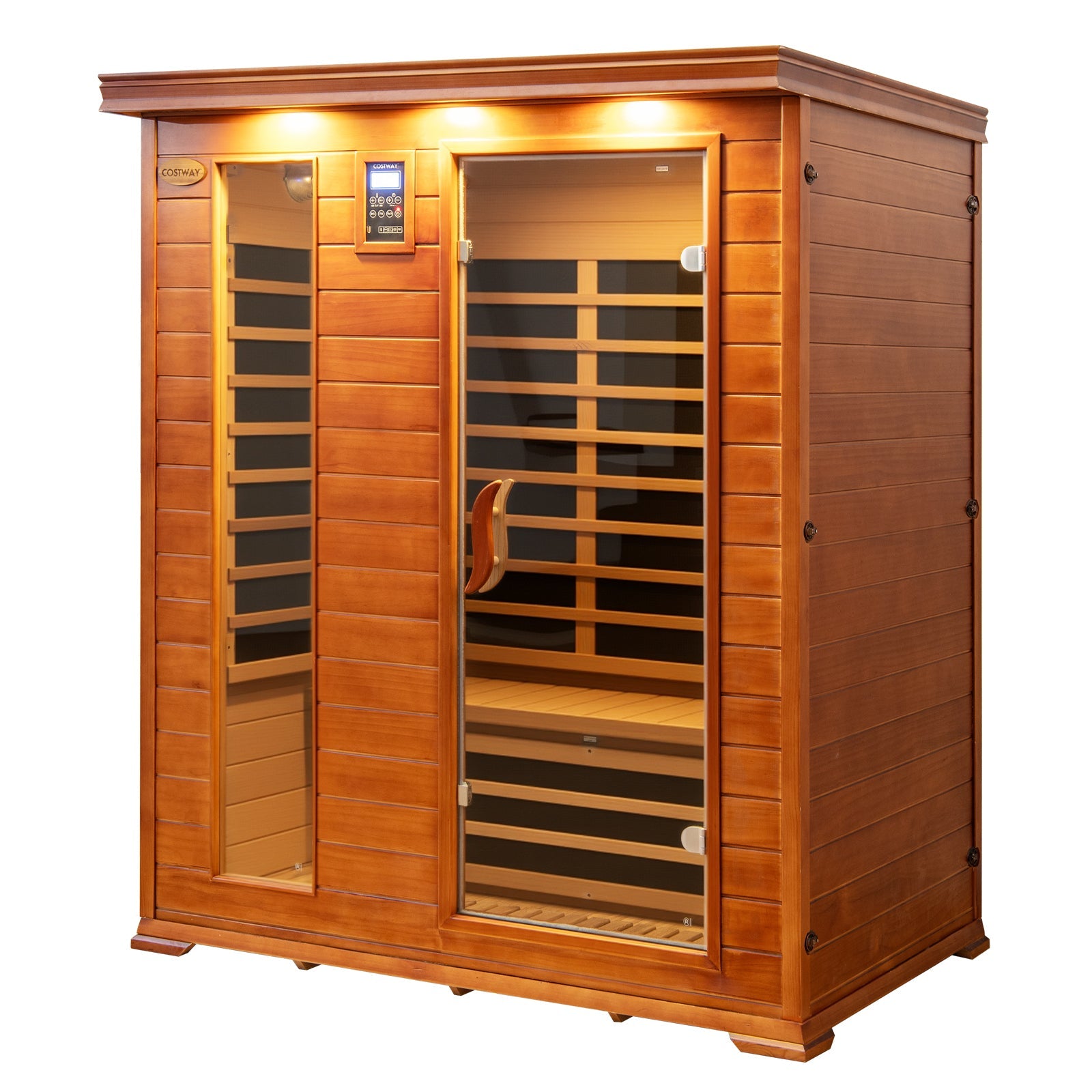 Costway- 2025 Model- 3 Person Infrared Sauna, Canadian Red Cedar Wood Far Infrared Sauna Room with 10 Carbon Heaters, Bluetooth Speakers, Reading Light, Indoor Personal Spa for Home Gym Relaxation- Low EMF