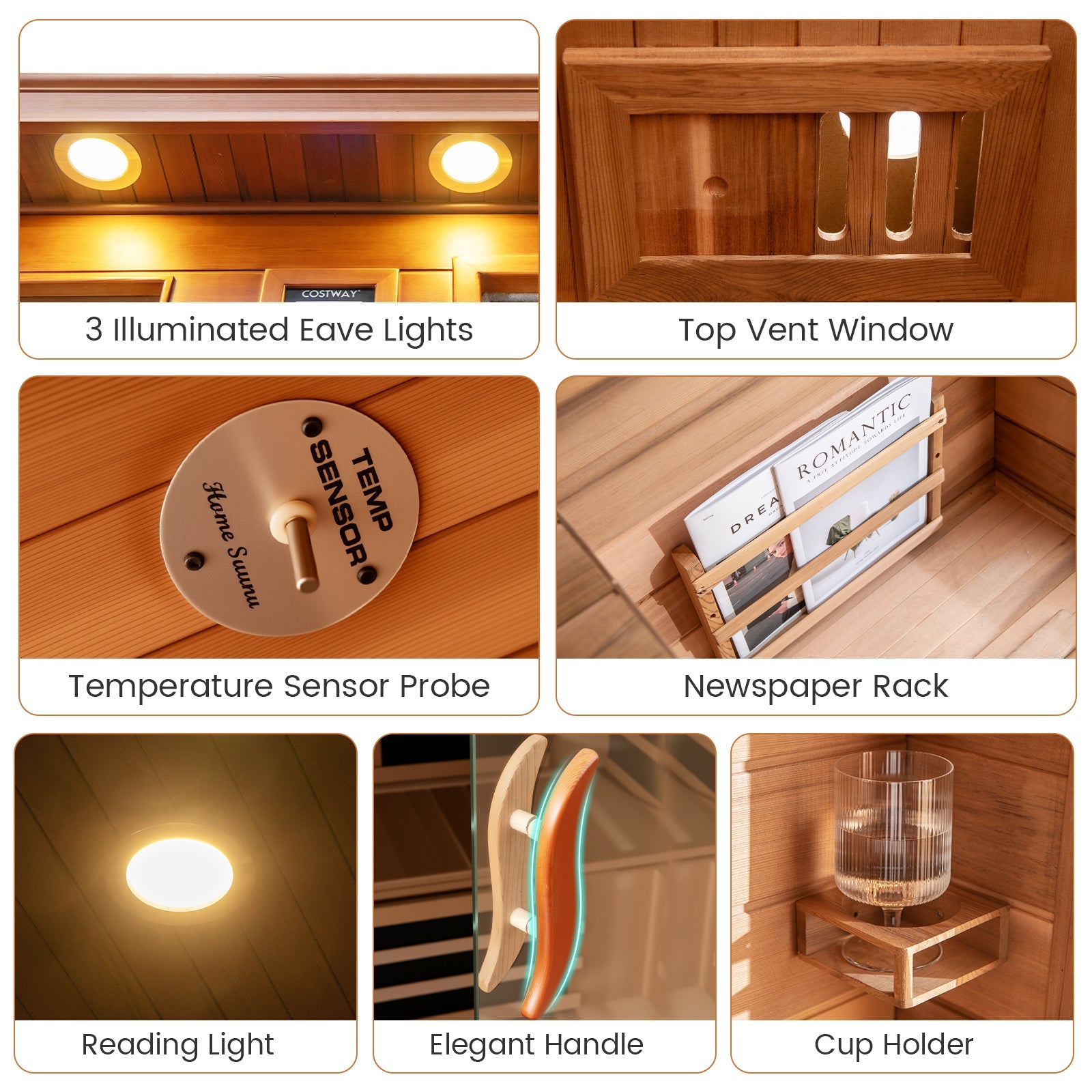 Material: Canadian Hemlock, Red Cedar Wood, Tempered Glass