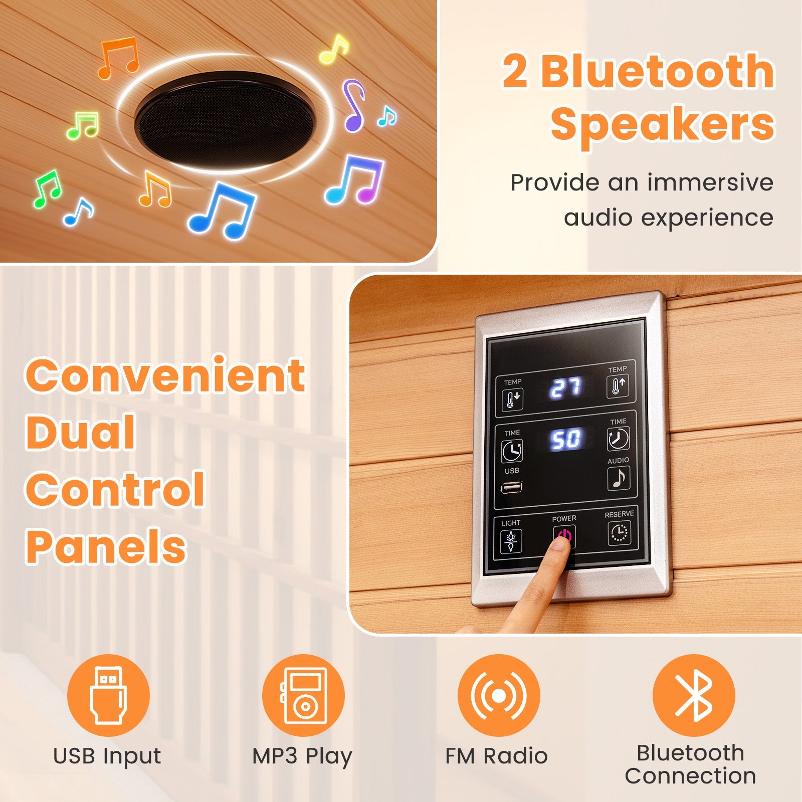 Holiday Sale-NEW 2025 COSTWAY 3D Heat Far Infrared Corner Sauna (3–5 Person) – Canadian Hemlock Wood-Red Light Therapy+Near Infrared-Carbon & Mica Heaters,-Chromotherapy Lighting-Low EMF-Bluetooth Speakers